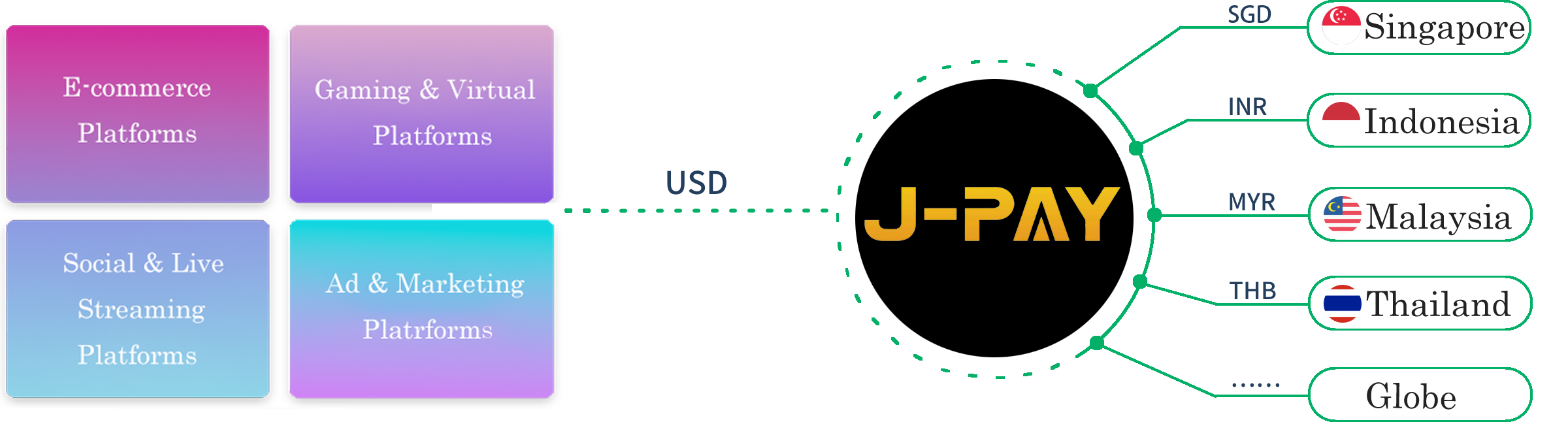 J-PAY offers multiple payout methods including direct e-wallet integration (GoPay, DANA, Touch'n Go etc.), local bank transfers, gateway payouts and cash pickup networks. We match the most suitable, cost-optimal route for B2B payments, platform commissions or personal remittances.